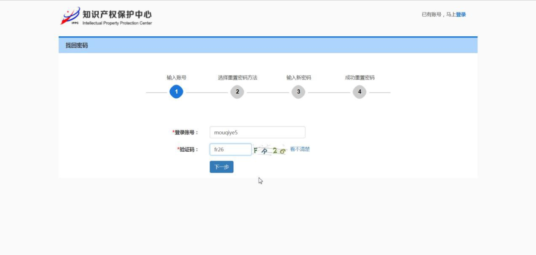 图 1- 10 找回密码——输入登录账号
