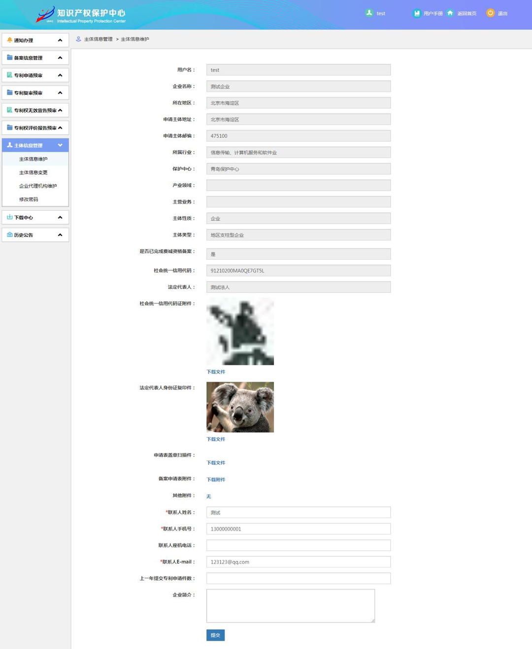 输入需要修改的信息,确认无误后点击“提交”按钮,提交至保护中心进行审查。