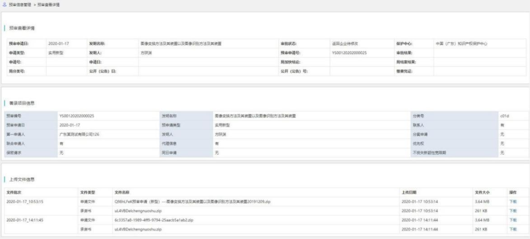 图 1- 34 专利预审信息查看详情