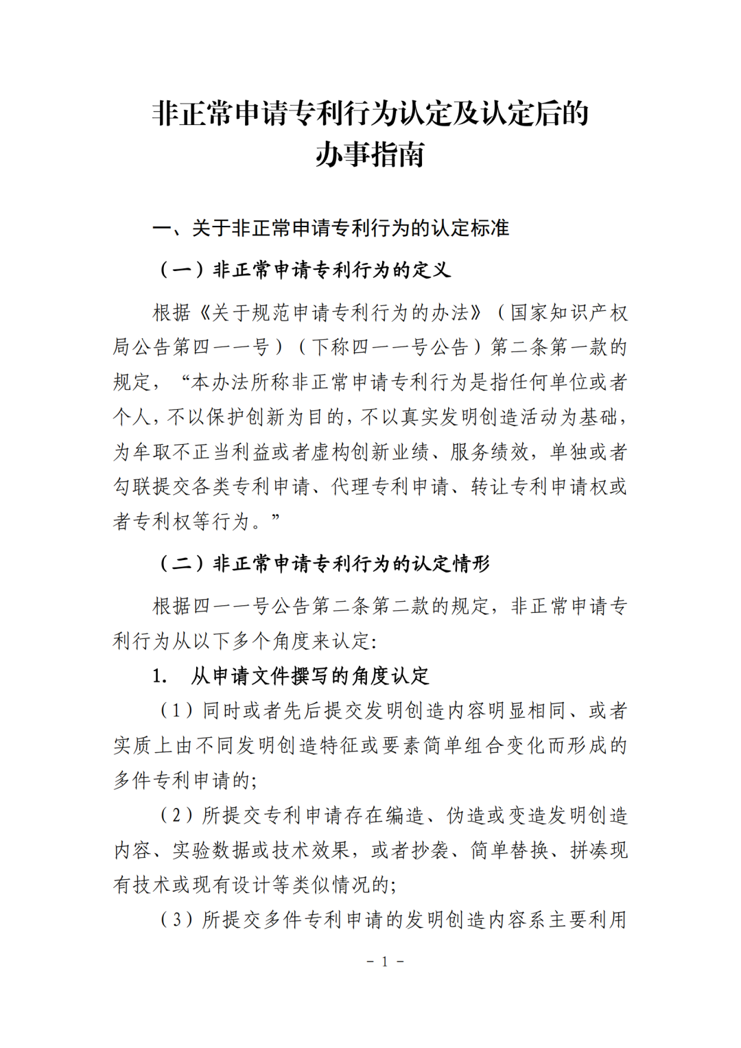 国知局《非正常申请专利行为认定及认定后的办事指南》全文发布!